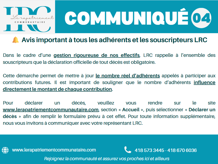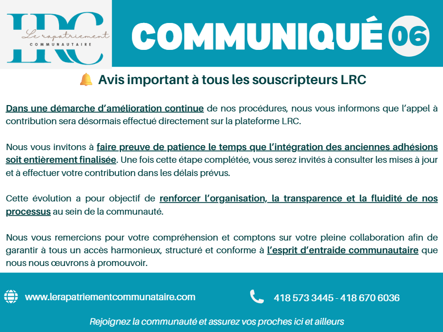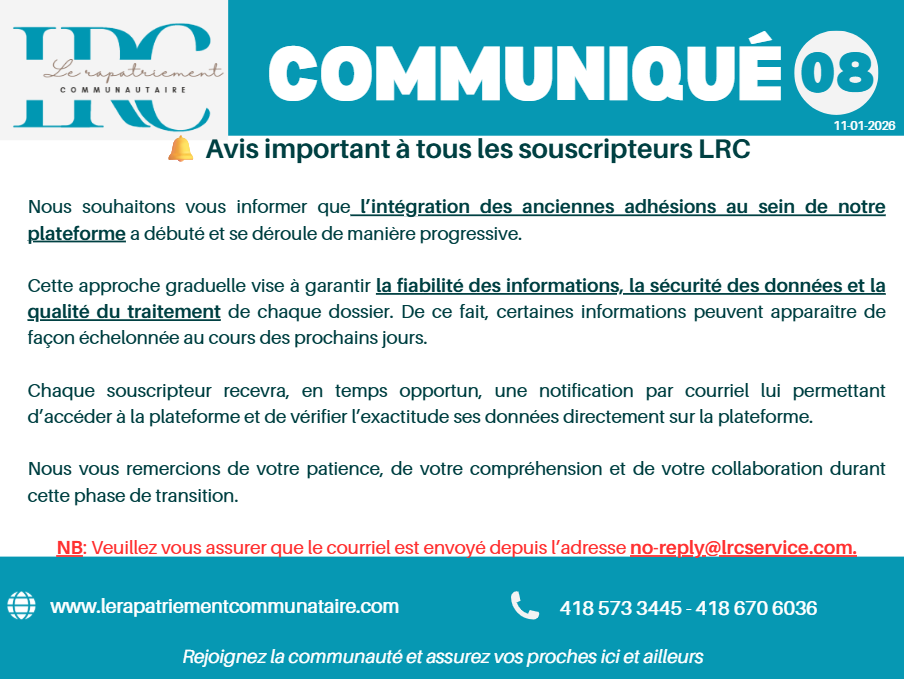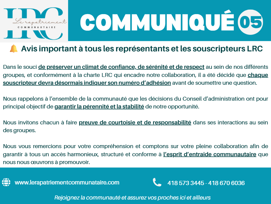 Pour toutes interactions dans les groupes LRC, il a été décidé que chaque souscripteur devra désormais indiquer son numéro d’adhésion avant de soumettre une question.
