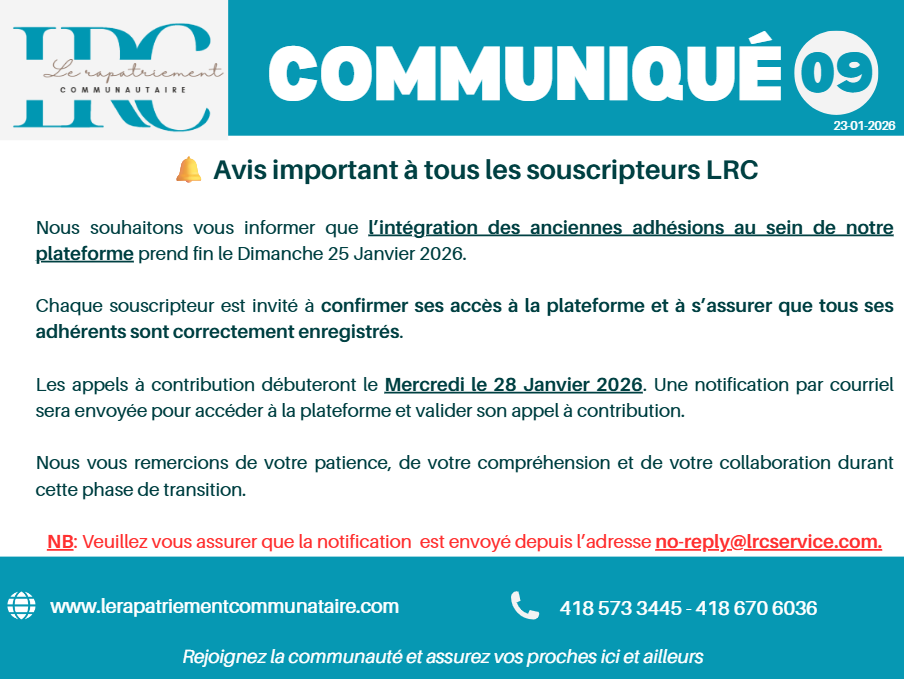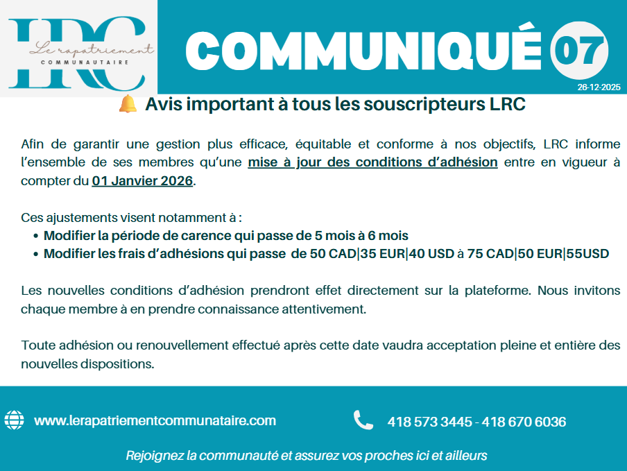 Les conditions d'adhésion à LRC changent au 01 Janvier 2026.